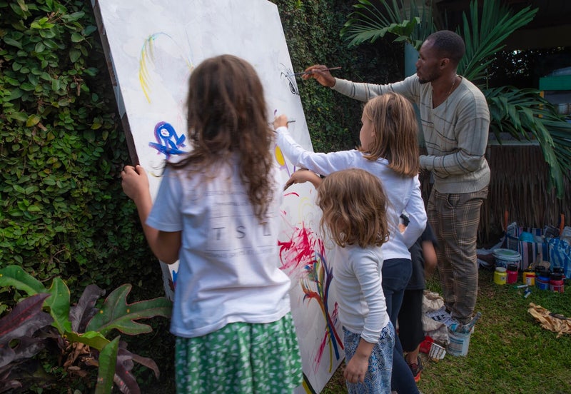 Artists Evince & Elise Artiste Elise supervising the collaborative art