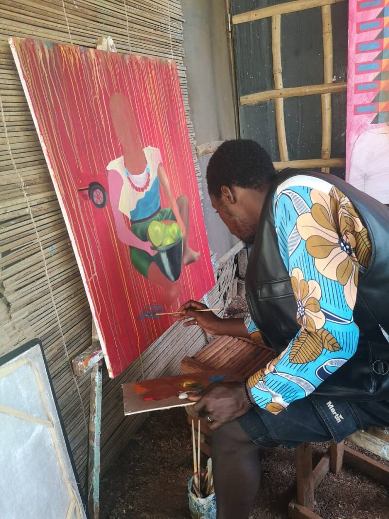 is a young Cameroonian artist who started his apprenticeship under the tutelage of Mekouti in 2022 at the Galerie dArt AfroBantu. He studied at Mbalmayo School of Arts for 6 years and is now exploring diverse styles and media, including oils, acrylics and sculpture - from portraits to original designs and learning by drawing inspiration from the great masters.
